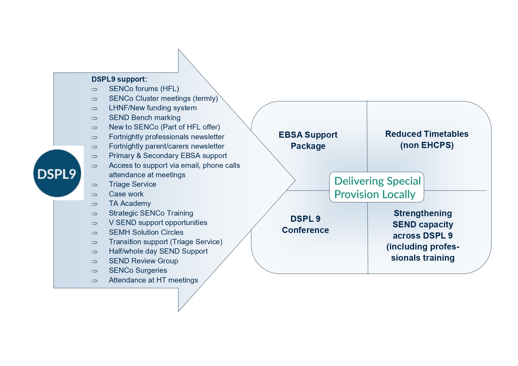All DSPL support and activities are planned in line with Hertfordshire's SEND Strategy 2022-25, and aim to meet the 5 ambitions: Tailoring, Enabling, Provision, Collaborating, Succeeding.
